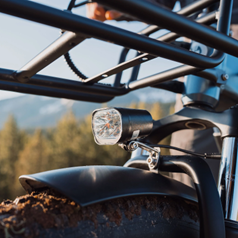 The Alpine’s two bright LED tail lights engage any time you use the break, keeping others aware of when you’re slowing down. On top of that, you can activate both the headlight and tail lights for maximum visibility while riding at night.