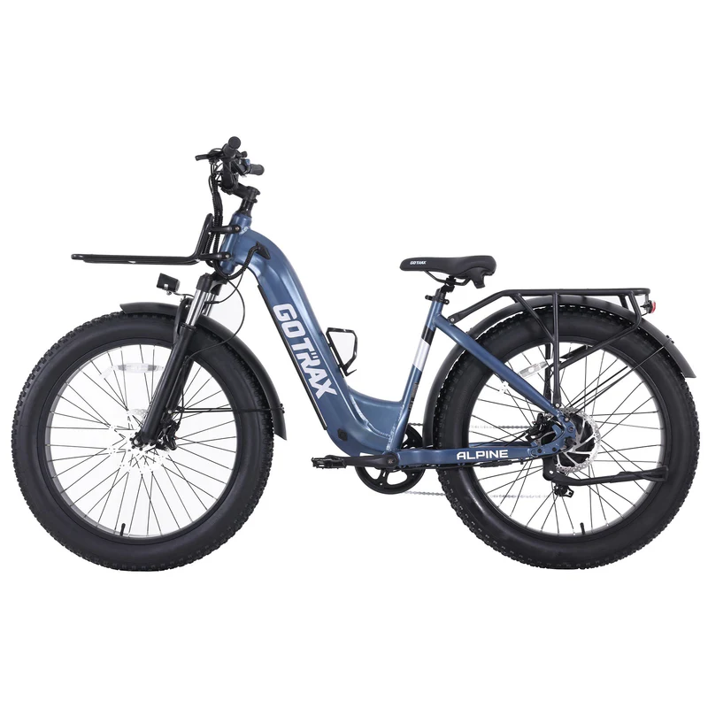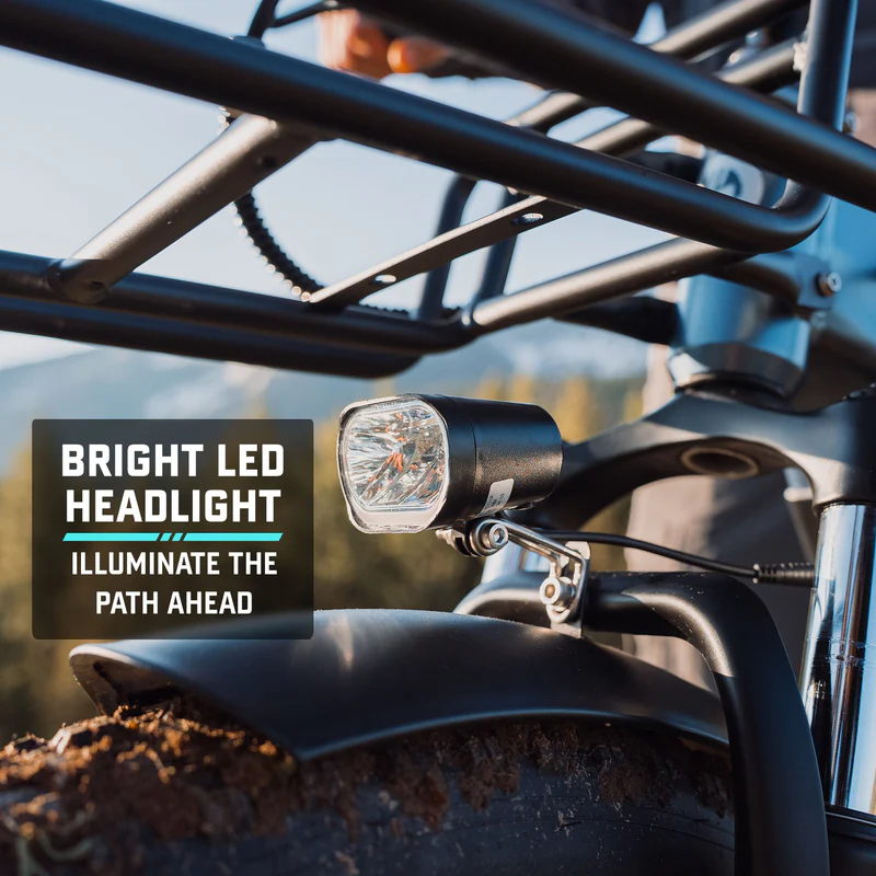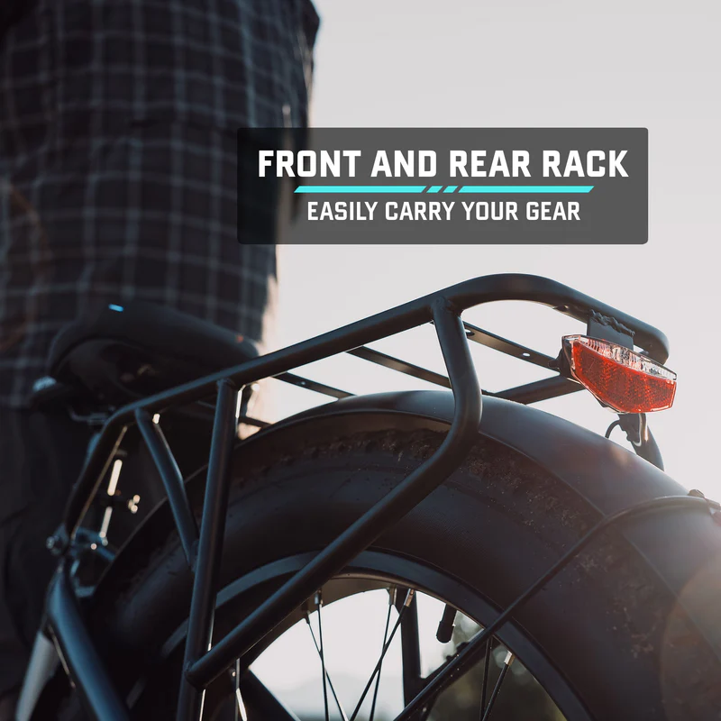 The Alpine is a highly capable ride for explorers of all kinds. Its 500 watt motor, 13.5 Ah battery, and 4” fat tires offer fast rides for miles on end, no matter the terrain. Plus, convenient features like a rear cargo rack, front suspension, and full-color display make rides easier than ever. No matter where or why you ride, the Alpine’s fantastic blend of great specs and an accessible price make it the all-around ideal fat tire eBike.