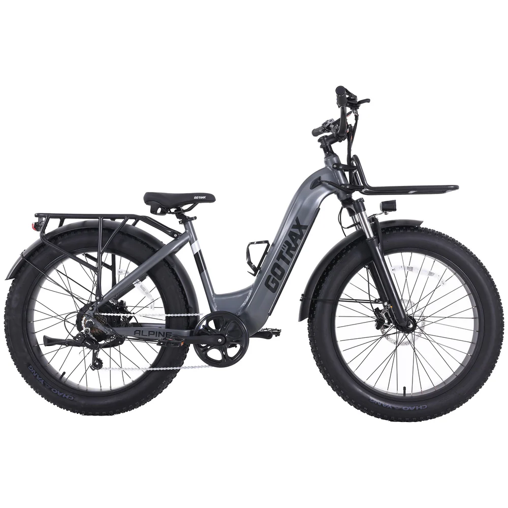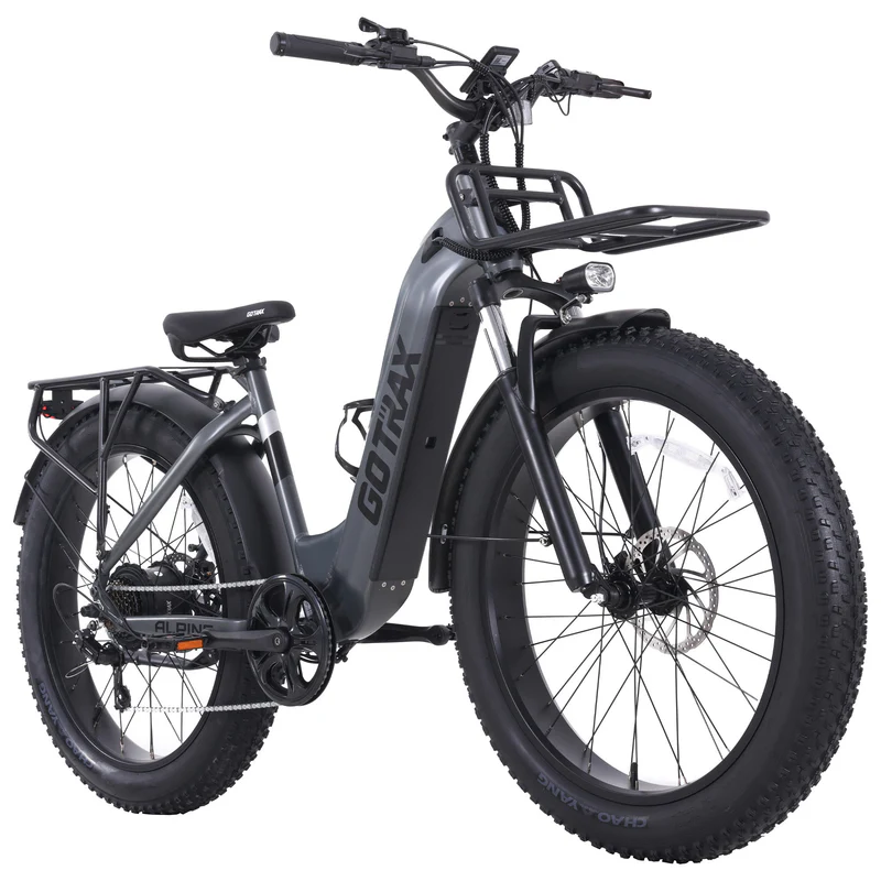 Coupled with the adjustable front suspension, Alpine’s 4” wide fat tires keep rides smooth and comfortable, no matter the terrain.