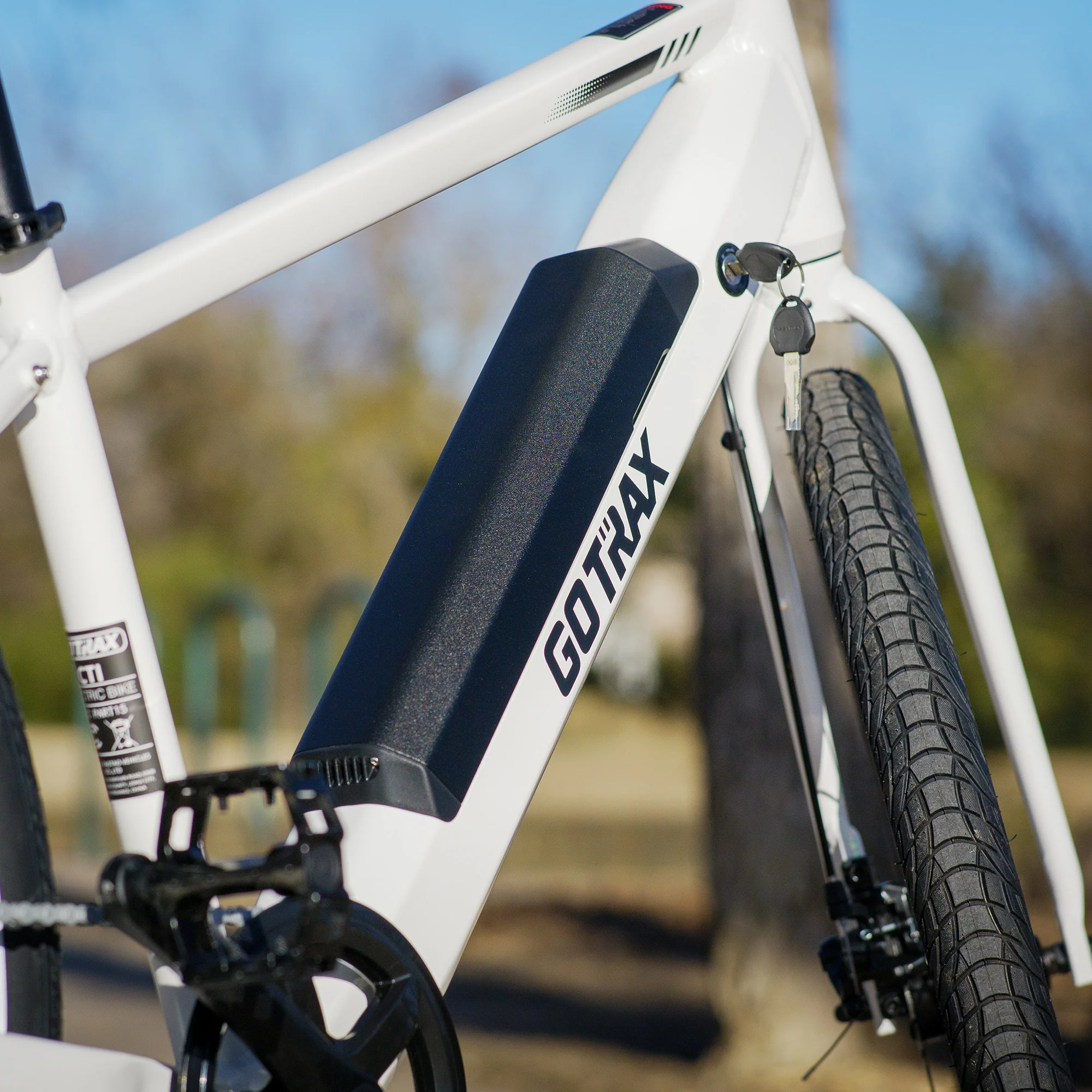 Easily access the CTI’s 36V 7.8Ah lithium-ion battery for your charging convenience. You won’t have to bring the entire e-bike with you to charge it.