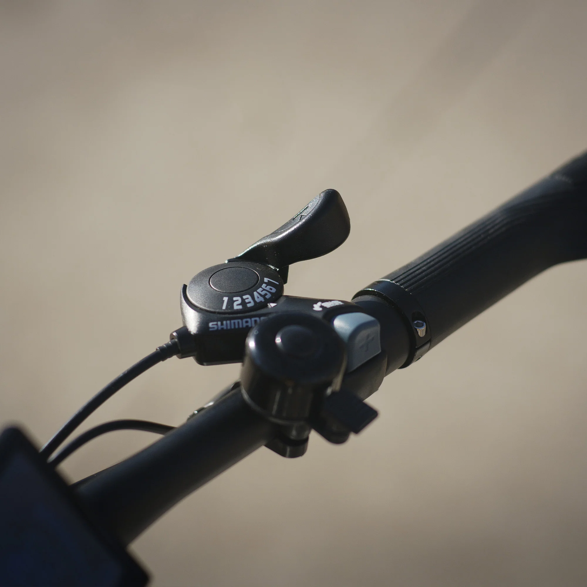 The pedal assist isn’t the only way to adjust your speed. The Shimano 7 speed shifter allows you to change the level of resistance when riding so you won’t break a sweat, even on steeper roads.