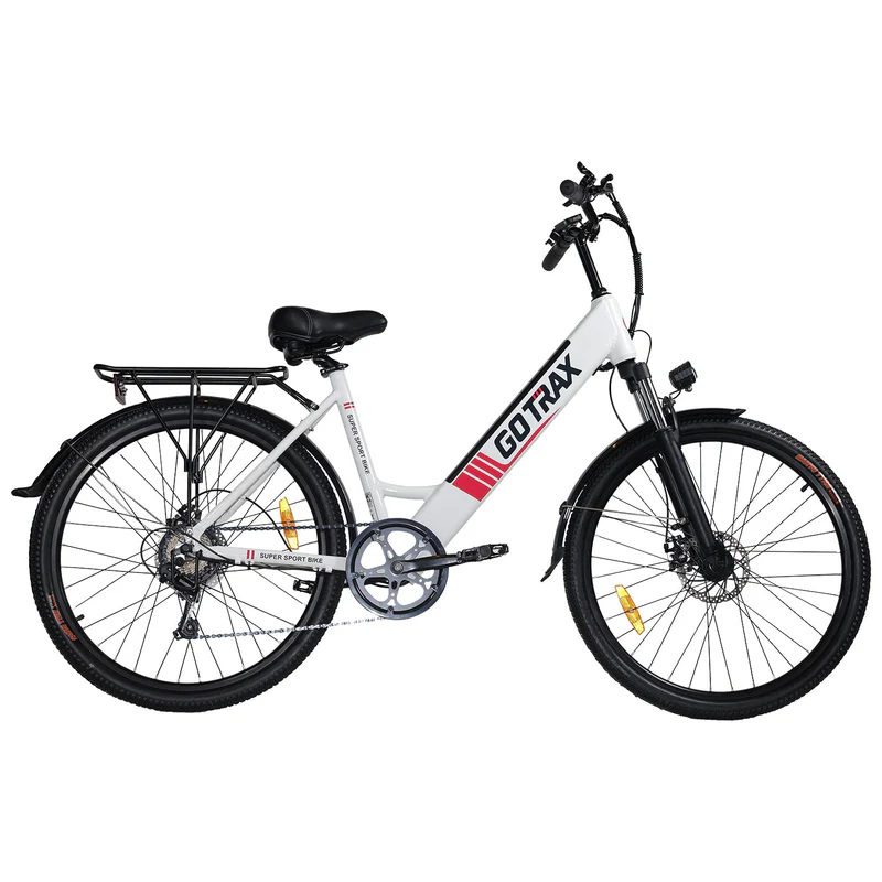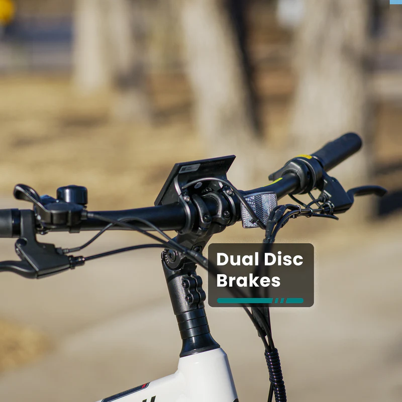 Just like a standard bike, this e-bike features dual braking to keep you safe and in control of your ride.