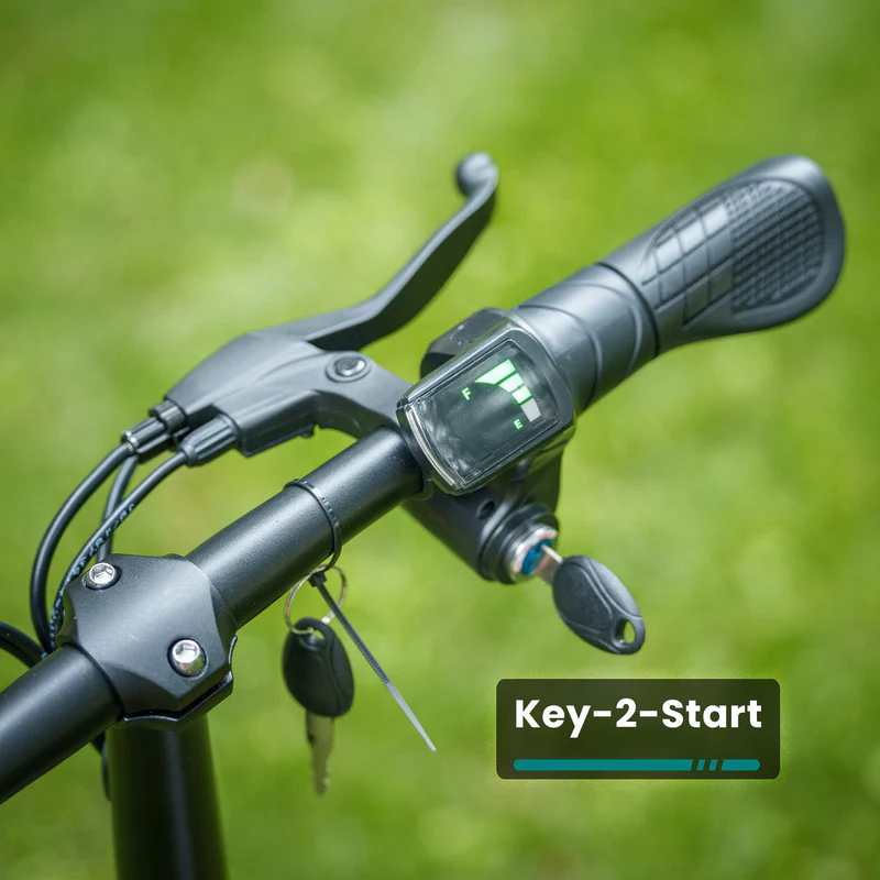 The Flex Voyager comes with a unique key, adding a level of security to your rides. Turn it clockwise once to engage the motor and twice to turn on the LED headlight.