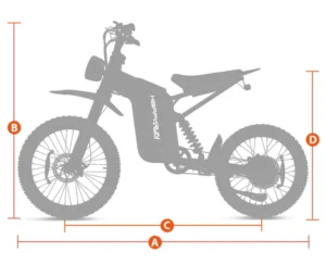 HappyRun G18 Pro electric dirt bike recommended rider height is 5’3″ ~ 6’5″, payload 350 lbs at maximum. The seat height of G18 Pro is 33.1 inches.