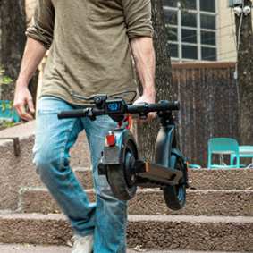 Instantly fold your electric scooter in half for storage and carrying convenience with our one-touch folding mechanism.