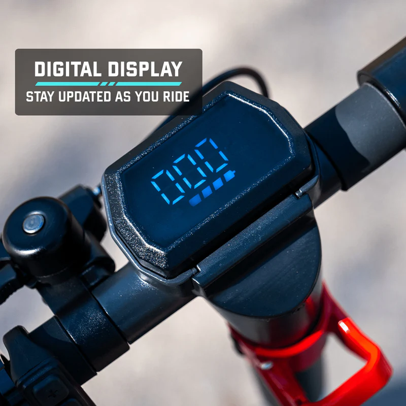 The crisp, clear LED screen provides quick readouts on your scooter’s speed, mileage, battery life, and more, keeping you in the know as you ride. It includes a digital code feature that allows for added security.