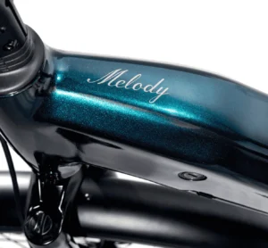 The battery is fully integrated and color-matched to the frame, so the Melody looks like a beautifully designed bike first, e-bike second.