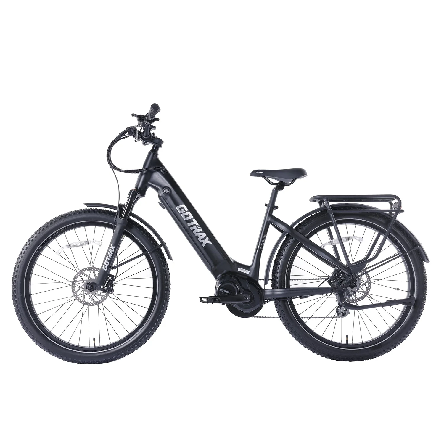 The MX1 Mid Drive Electric Bike is the first of its kind from GOTRAX. With a range of 82 miles per charge, the MX1 has our longest e-bike range to date, meaning this electric bike can take you anywhere you need to go on a single ride. Plus, with features like adjustable front suspension, a torque sensor, a cargo rack, and more, the MX1 is the perfect ride for commuters and adventurers alike.