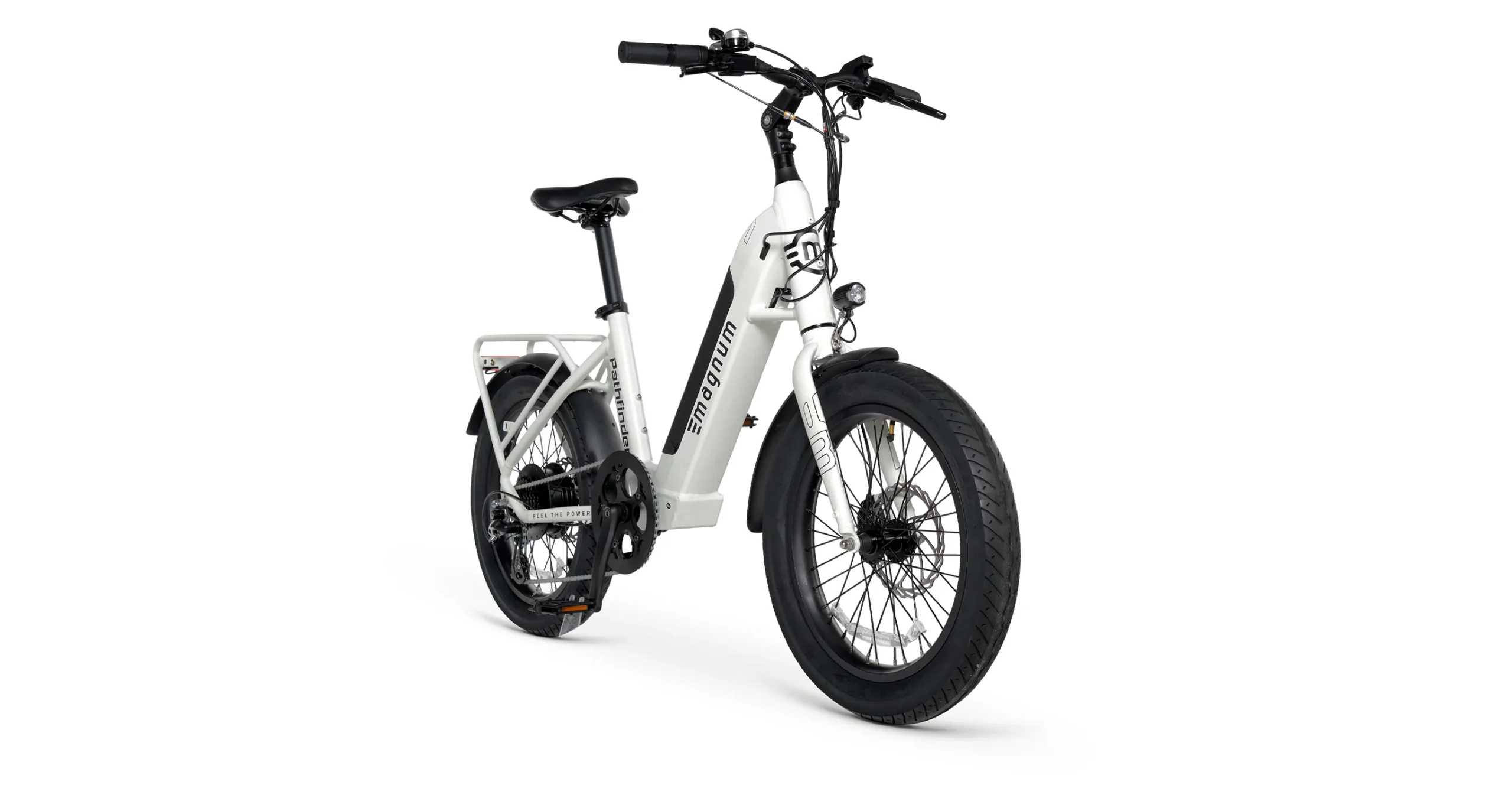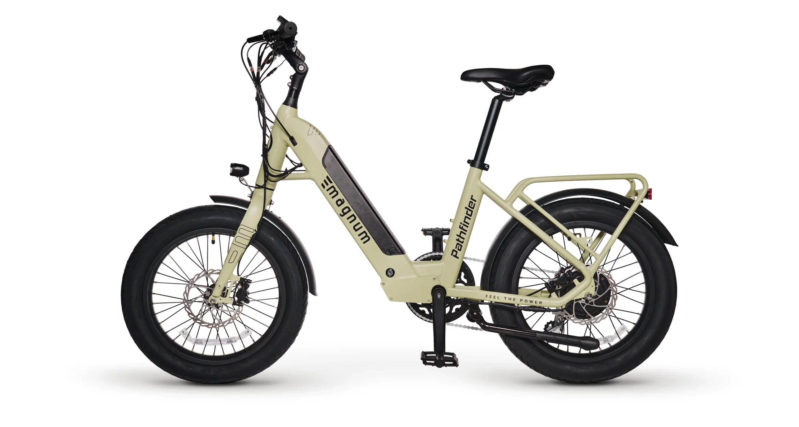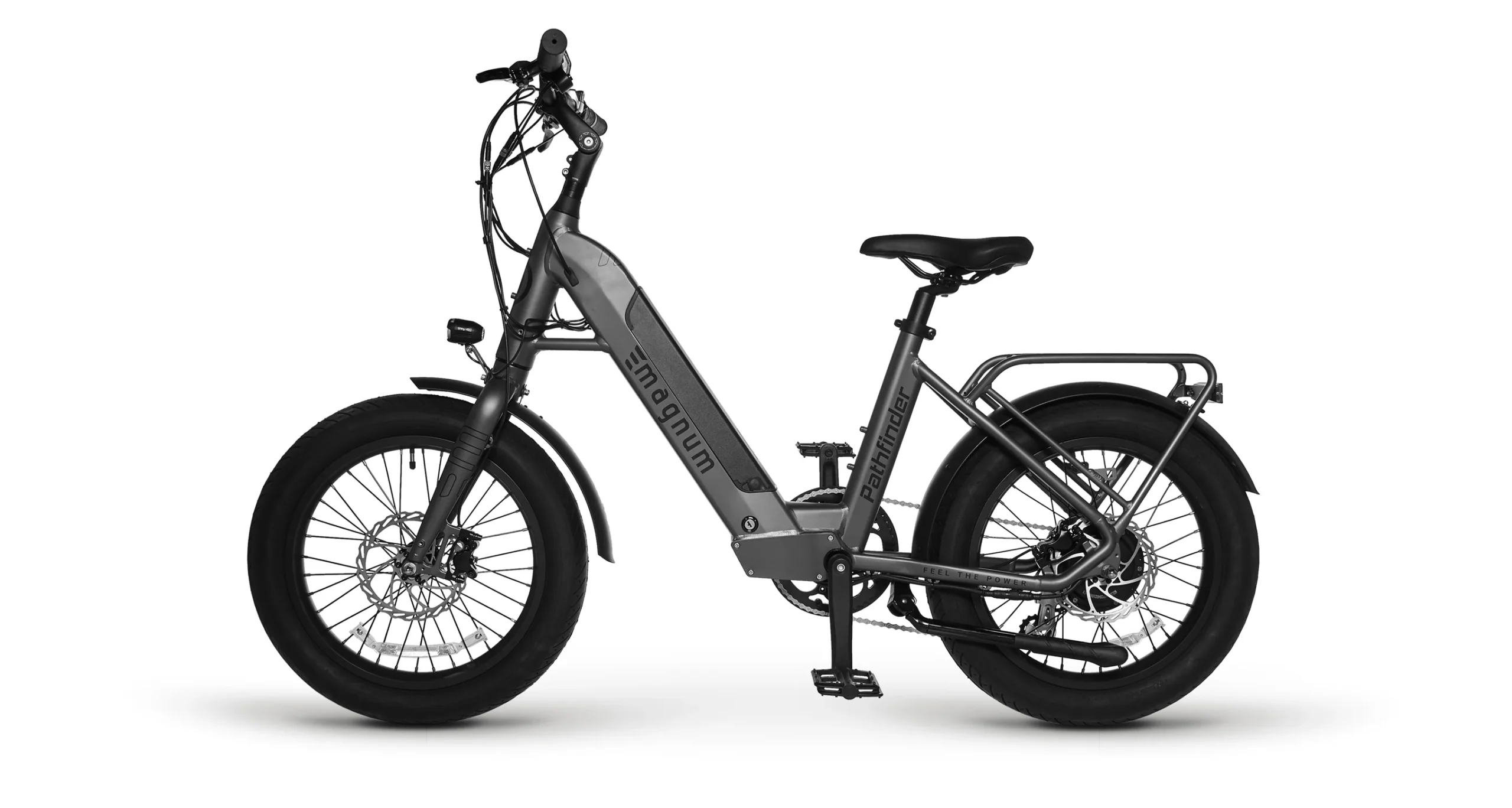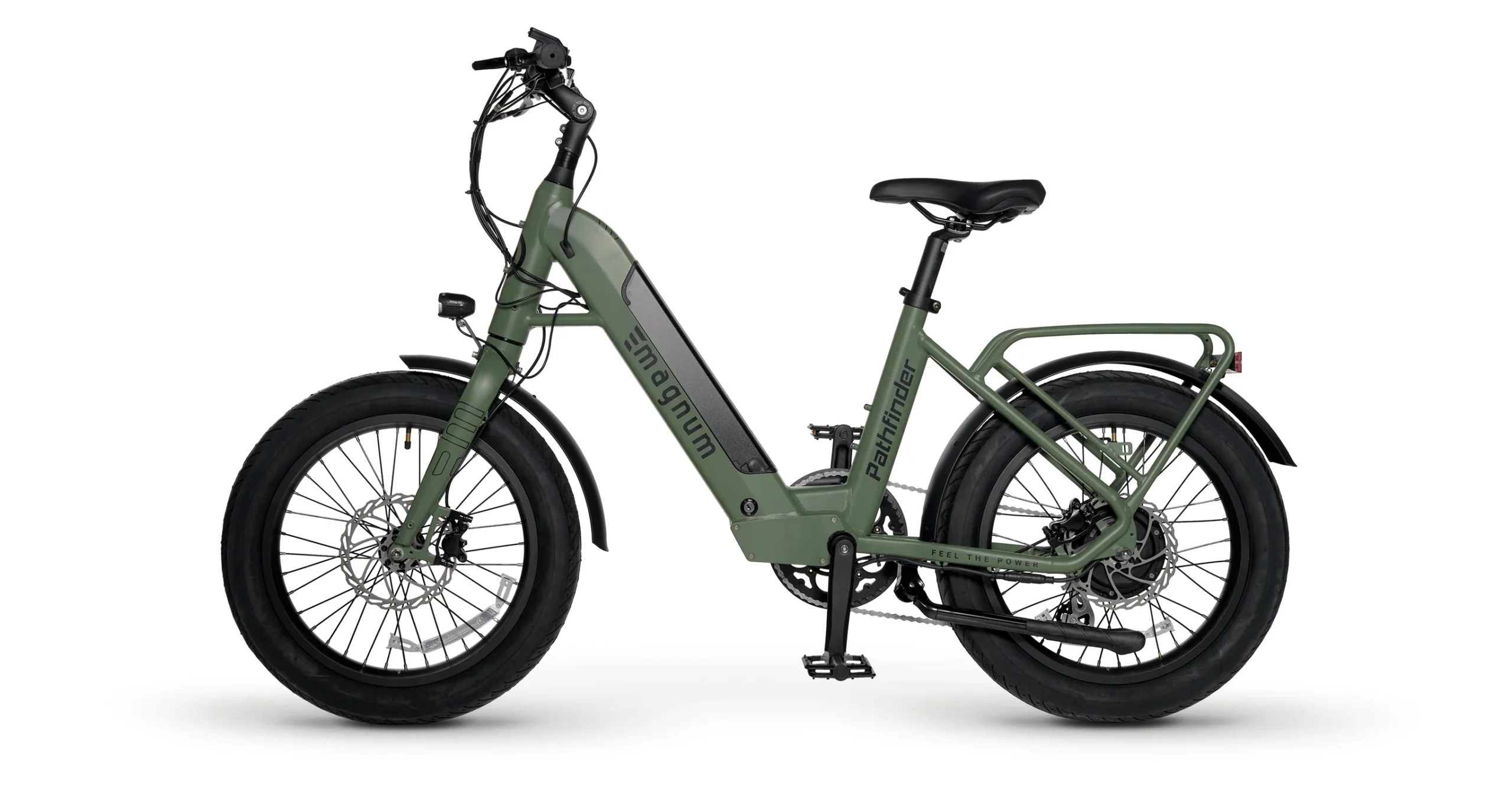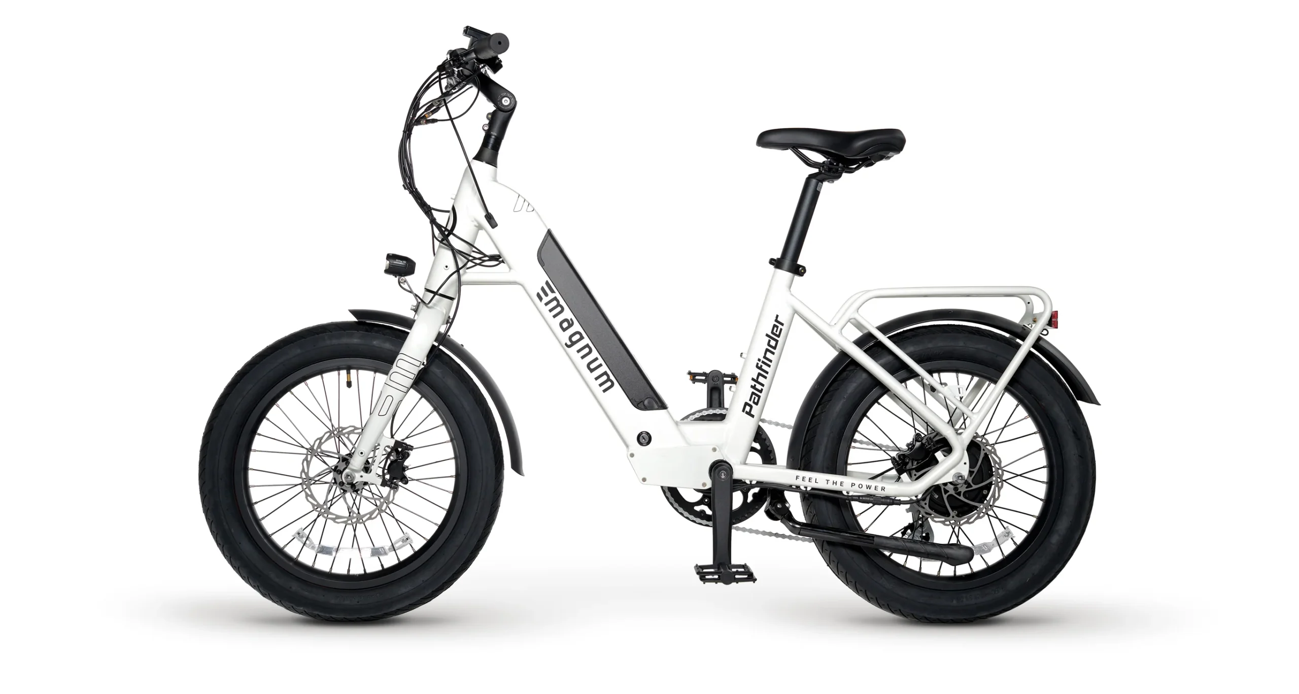 A bike for all uses! The Magnum Pathfinder T is a versatile e-bike for commuting, recreation, exercise and more. The unisex step-through frame accommodates riders of all sizes and abilities. Includes Torque pedal assist for extra control.