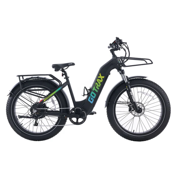 The GOTRAX Tundra All Terrain Electric Bike is the ultimate off-roader. Thanks to shock absorbing 26″ fat tires and an adjustable front suspension system. Ideal for weekend adventurers looking for a little more power in their rides.
